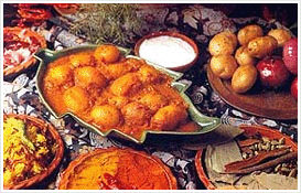 Add the aloo (potatoes) and hot water and stir over a low heat for 5 minutes. Sprinkle the dum aloo with pepper and garam masala and cook for few minutes.